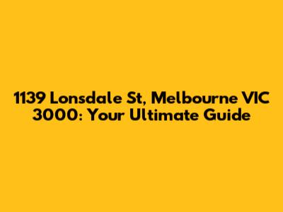 Hey guys! Ever wondered what's going down at 1139 Lonsdale St, Melbourne VIC 3000? Whether you're a local looking for a new hangout, a tourist exploring the vibrant city of Melbourne, or just curious about this specific address, you've come to the right place. This spot, situated right in the heart of Melbourne, VIC 3000, is more than just a pin on the map; it's a hub of activity and a part of the city's rich tapestry. We're going to dive deep into everything this location has to offer, from its surroundings to potential businesses that might call it home. So, buckle up, because we're about to give you the lowdown on 1139 Lonsdale St, Melbourne VIC 3000.