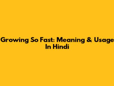 Growing So Fast: Meaning & Usage In Hindi