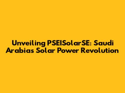 Unveiling PSEISolarSE: Saudi Arabia's Solar Power Revolution