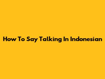 How To Say "Talking" In Indonesian