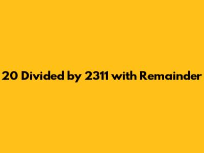 Therefore, 20 divided by 2311 is 0 with a remainder of 20.