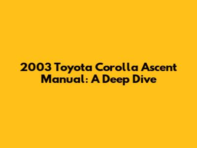 Hey guys! Today, we’re diving deep into the 2003 Toyota Corolla Ascent manual. This car is a legend, known for its reliability, fuel efficiency, and overall practicality. If you're considering buying one, already own one, or are just curious, this guide is for you. We'll cover everything from its features and performance to common issues and maintenance tips. Let's get started!