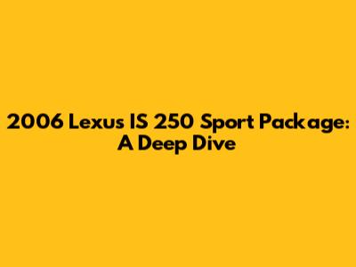 Hey guys! Let's dive into the 2006 Lexus IS 250 Sport Package. This car isn't just a ride; it's a statement. For those looking at a blend of luxury, performance, and sporty aesthetics, the IS 250 with the sport package from 2006 is definitely worth a look. We'll explore what makes this particular model special, covering everything from its performance and handling to its interior comforts and unique features. Whether you're a potential buyer or just a car enthusiast, this in-depth exploration will give you all the juicy details.