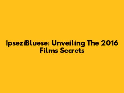 IpseziBluese: Unveiling The 2016 Film's Secrets