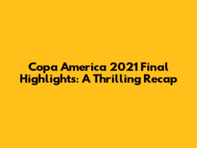 Copa America 2021 Final Highlights: A Thrilling Recap