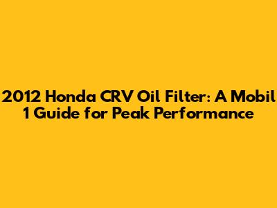 Hey guys! So, you're here because you're looking for the lowdown on the 2012 Honda CRV oil filter and if Mobil 1 is a good fit, right? Well, you've come to the right place. Keeping your CRV's engine happy is super important, and the right oil filter can make a huge difference. I'm going to walk you through everything, from why the oil filter matters to choosing the best one for your ride. We will discuss the 2012 Honda CRV, its oil filter specifications, and why Mobil 1 is a fantastic choice.