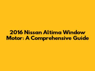 Troubleshooting Your 2016 Nissan Altima Window Motor: A Step-by-Step Guide