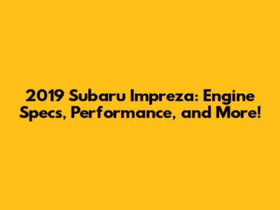 Hey car enthusiasts! Let's dive deep into the heart of the 2019 Subaru Impreza, specifically its engine! We're gonna break down everything you need to know about the engine, its performance, and why it's a solid choice for a compact car. So, buckle up, and let's get started!