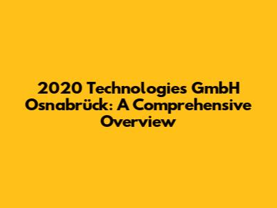 Examining the Impact and Significance of 2020 Technologies GmbH Osnabrück