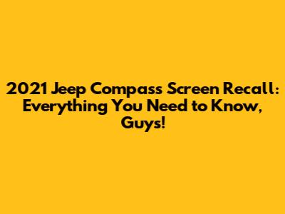 Hey everyone, let's dive into the 2021 Jeep Compass screen recall. If you're a proud owner of this compact SUV, or maybe you're thinking about getting one, this is super important info. A recall means the manufacturer (in this case, Jeep) has identified a safety issue with a particular part of a vehicle and is offering a free fix. For the 2021 Jeep Compass, the issue centers around the infotainment screen. This screen is your central hub for navigation, entertainment, and vehicle settings, so it's a pretty critical piece of tech. The core problem, as identified in the recall, is that the screen might experience a software glitch that can cause it to go blank or freeze up. This isn't just a minor annoyance, guys. When your screen goes dark, you lose access to essential features. Imagine trying to use the backup camera and seeing nothing but black. Or picture yourself trying to adjust the climate control without being able to see the settings. These are real-world safety concerns that Jeep is addressing. Jeep initiated this recall to rectify issues with the infotainment system screens in the 2021 Jeep Compass models. The affected screens may experience software glitches, which could cause them to freeze or go blank. This can lead to a loss of essential functions, like the backup camera display and climate control settings, potentially increasing the risk of accidents. Jeep's commitment to vehicle safety is reflected in its prompt response to address this issue and provide a free solution to its customers. The recall covers specific models and VIN ranges; it's always best to verify your vehicle's status on the official recall website or through a dealership. This is to ensure you are included in the affected models so you can take proper action. These fixes are at no cost to owners and are a crucial part of maintaining the vehicle's optimal functionality and safety. The recall aims to prevent potential hazards by ensuring that all related software systems work correctly. It's a testament to the brand's dedication to quality and to maintaining the safety of its customers. Taking action on the recall ensures that all aspects of your vehicle, especially safety features such as the backup camera and display, function correctly. This gives you peace of mind while driving.