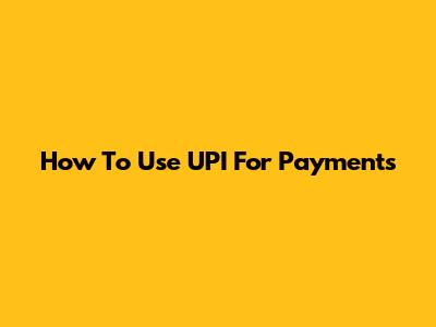 How To Use UPI For Payments