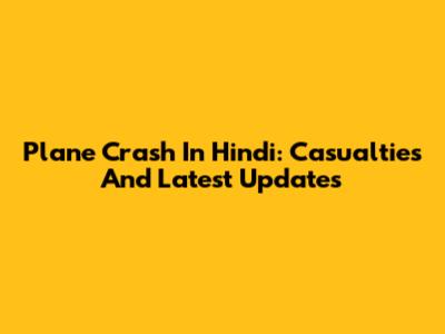 Plane Crash In Hindi: Casualties And Latest Updates
