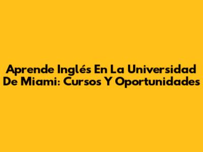 Aprende Inglés En La Universidad De Miami: Cursos Y Oportunidades
