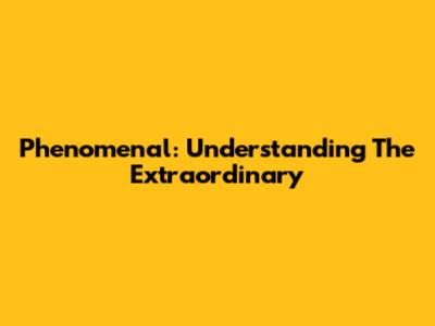 Phenomenal: Understanding The Extraordinary