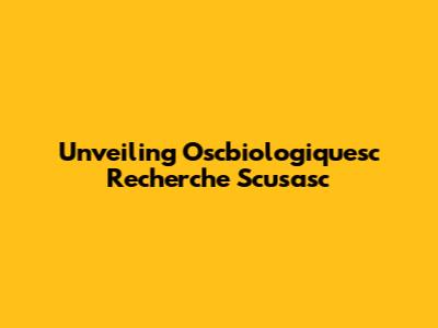 Unveiling Oscbiologiquesc Recherche Scusasc