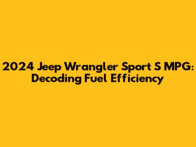 Choosing a 2024 Jeep Wrangler Sport S involves weighing several factors, including fuel economy. Knowing the expected MPG ratings, considering the factors influencing fuel efficiency, and adopting fuel-saving driving habits can help you make an informed decision and enjoy your adventures with less worry about your fuel consumption. Always check the official EPA ratings for the specific model you're considering, and remember that real-world MPG can vary based on several factors. With a little planning and awareness, you can ensure that your Jeep Wrangler Sport S delivers a satisfying blend of off-road capability and reasonable fuel efficiency. Happy trails, and drive responsibly!