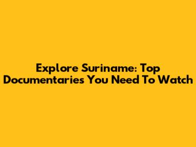 Explore Suriname: Top Documentaries You Need To Watch