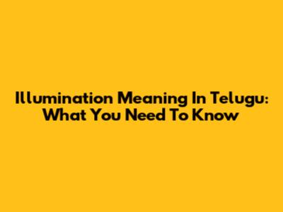 Illumination Meaning In Telugu: What You Need To Know