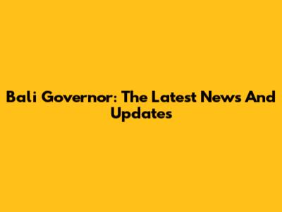Bali Governor: The Latest News And Updates
