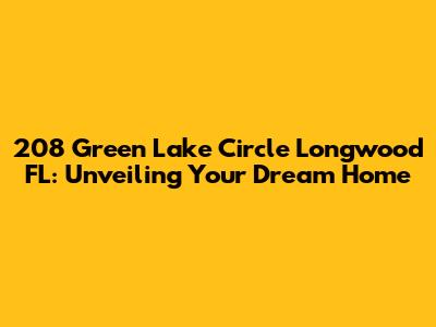 Hey everyone, let's dive into the charming world of 208 Green Lake Circle in Longwood, Florida! If you're on the hunt for a beautiful home, this might just be your lucky day. Located in a fantastic area, this property offers a blend of comfort, style, and convenience that's hard to beat. We're going to take a closer look at what makes 208 Green Lake Circle so special, from its prime location to its standout features. Get ready to explore a place where you could see yourself building a future, creating memories, and simply enjoying life to the fullest. So, buckle up, because we're about to embark on a virtual tour that will have you dreaming of calling this place home.