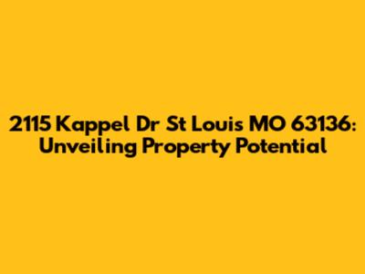 Hey there, property enthusiasts! Let's dive deep into the world of 2115 Kappel Dr, St Louis, MO 63136. This isn't just an address; it's a gateway to understanding real estate, home improvement possibilities, and the charming vibes of St. Louis. We're going to explore what makes this property tick, from its potential for renovation to its place within the broader St. Louis community. Buckle up, because we're about to embark on a journey filled with insights, tips, and a whole lot of real estate fun. Understanding a property like 2115 Kappel Dr involves more than just looking at its facade. It requires a comprehensive analysis of its location, current market value, and the potential it holds for homeowners and investors. We'll start with the basics, then move on to the exciting stuff like home improvement ideas and strategies to maximize your investment. The goal here is to equip you with the knowledge and tools you need to make informed decisions, whether you're a first-time homebuyer or a seasoned real estate pro. This exploration is designed to be informative and engaging, offering practical advice and a fresh perspective on the possibilities within the property landscape of St. Louis.