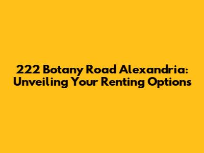 Hey there, future Alexandria residents! If you're currently in the market for a new place to call home and 222 Botany Road in Alexandria has caught your eye, then you've come to the right place. Navigating the rental landscape can sometimes feel like trying to decipher ancient hieroglyphics, but fear not, because we're about to break it down for you. This comprehensive guide will cover everything you need to know about 222 Botany Road Alexandria rent, from available properties and rental costs to the surrounding neighborhood and what makes this location so desirable. So, buckle up, grab a cup of coffee (or your beverage of choice), and let's dive into the details! We'll explore the ins and outs, ensuring you're well-equipped to make an informed decision and hopefully find your dream apartment or house in this charming part of Alexandria. This exploration will encompass not just the specifics of 222 Botany Road Alexandria rent, but also the broader context of the area, providing a holistic view that goes beyond just the price tag. Let's make your renting journey a breeze, guys!