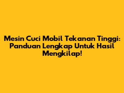 Mesin Cuci Mobil Tekanan Tinggi: Panduan Lengkap Untuk Hasil Mengkilap!
