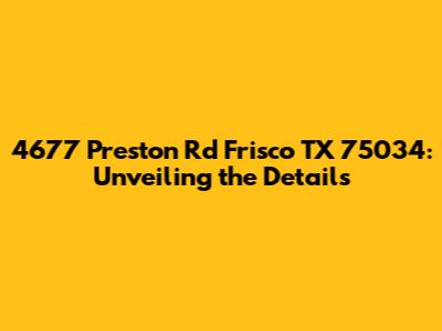 Alright guys, let's dive deep into everything you need to know about 4677 Preston Rd, Frisco, TX 75034. This address isn't just a random set of numbers and a street name; it's a gateway to understanding a specific location, its surroundings, and what makes it tick. Whether you're a potential buyer, a curious neighbor, or just someone interested in Frisco real estate, this detailed exploration will give you a comprehensive overview.