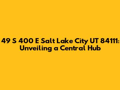 Hey there, folks! Ever wondered about the pulse of Salt Lake City? Well, if you're looking for a central location, 49 S 400 E, Salt Lake City, UT 84111, is a spot you should know about. This address isn't just a collection of numbers and letters; it's a doorway to a vibrant neighborhood brimming with life, culture, and convenience. Let's dive in and explore what makes this location so special. We'll cover everything from local attractions to what makes it a great place to live or visit. Buckle up; it's going to be a fun ride!