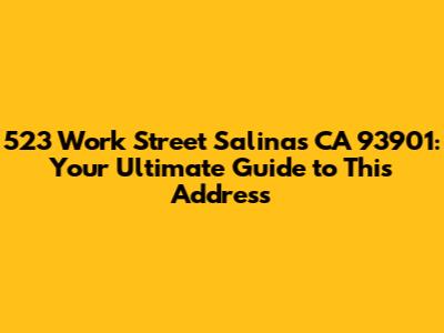 Hey there, folks! Let's dive into everything you need to know about 523 Work Street in Salinas, California, zip code 93901. Whether you're a potential resident, a business owner looking for a new spot, or just plain curious, this guide will break down the essential details. We'll explore the neighborhood, the types of properties you might find, nearby amenities, and a whole lot more. So, buckle up, and let's get started on this exciting journey to discover what makes 523 Work Street and its surrounding area in Salinas tick. We're going to cover a ton of ground, making sure you have all the insights you need. Get ready to explore the heart of Salinas, one street at a time!