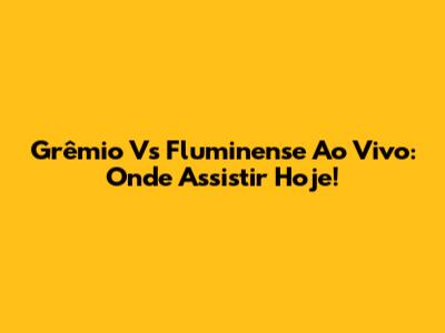 Grêmio Vs Fluminense Ao Vivo: Onde Assistir Hoje!
