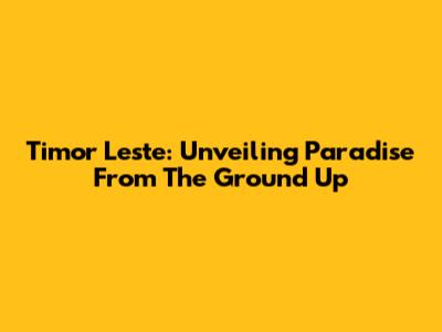 Timor Leste: Unveiling Paradise From The Ground Up