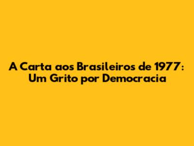 A Carta aos Brasileiros de 1977 permanece como um chamado permanente à democracia, um lembrete de que a liberdade e os direitos humanos devem ser defendidos a todo custo. O documento é um testemunho da coragem e da determinação daqueles que ousaram desafiar a ditadura militar e lutar por um Brasil mais justo e igualitário.
