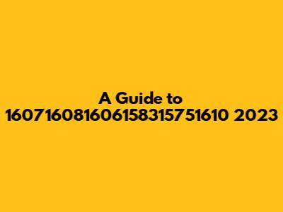 Understanding the Basics of 160716081606158315751610 2023