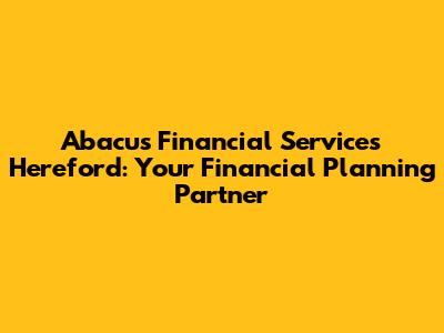 Hey guys! Let's dive into the world of Abacus Financial Services in Hereford. Finding the right financial advisor can feel like navigating a maze, right? But fear not! This guide will break down everything you need to know about Abacus Financial Services, their offerings, and why they could be your perfect financial planning partner in Hereford. We'll explore their services, understand their approach, and help you decide if they're the right fit for your financial goals. So, grab a coffee, get comfy, and let's unravel the secrets to smart financial planning with Abacus Financial Services Hereford!