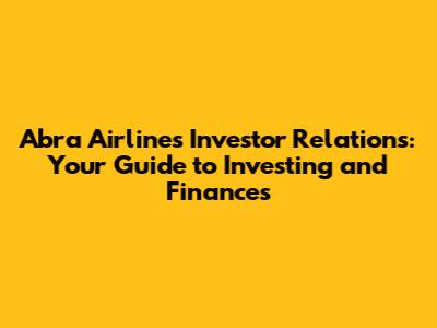 Hey everyone, let's dive into the world of Abra Airlines Investor Relations! If you're here, chances are you're curious about investing in Abra Airlines, or maybe you're already an investor. Either way, you've come to the right place. We're going to break down everything you need to know about Abra Airlines, its financials, and how to stay updated on the latest investor information. Think of this as your one-stop shop for understanding Abra Airlines from an investor's perspective. We'll explore the key aspects of Abra's financial performance, the opportunities and challenges the airline faces, and how you can access important investor resources. So, buckle up, grab a coffee (or your beverage of choice), and let's get started on this exciting journey into the world of airline investments!