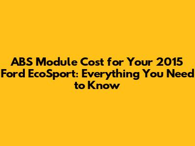 Hey guys, if you're here, you're probably trying to figure out the imodulo abs ecosport 2015 valor – or, in plain English, how much it's going to cost you to replace the ABS module in your 2015 Ford EcoSport. Let's dive deep into this topic, covering everything from the price of the part itself to the labor costs, and even some tips on how to save some dough. Understanding the costs associated with your car repairs can be a real headache, right? Well, hopefully, this guide will clear things up and give you a better idea of what to expect when you take your EcoSport in for this repair. So, buckle up, and let's get started!