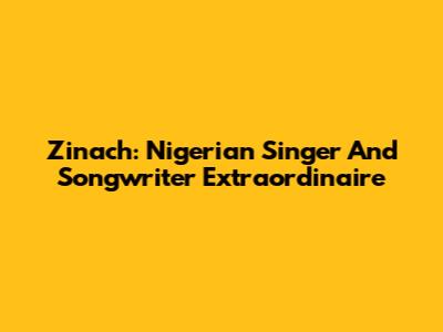 Zinach: Nigerian Singer And Songwriter Extraordinaire