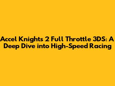 Hey guys! Today, we're diving headfirst into the adrenaline-pumping world of Accel Knights 2 Full Throttle for the Nintendo 3DS. If you're a fan of high-speed racing, customizable vehicles, and intense competition, then buckle up because this game might just be your next obsession. We'll explore everything from the core gameplay mechanics to the stunning visuals and immersive sound design that make this title a standout on the handheld console.