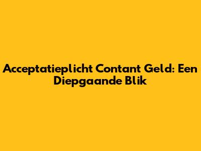 Wat is Acceptatieplicht Contant Geld Eigenlijk?