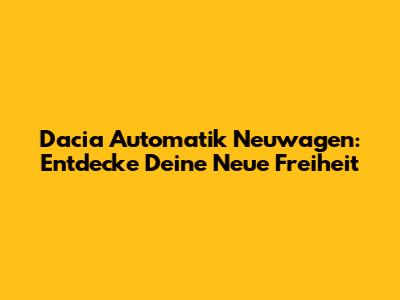 Dacia Automatik Neuwagen: Entdecke Deine Neue Freiheit