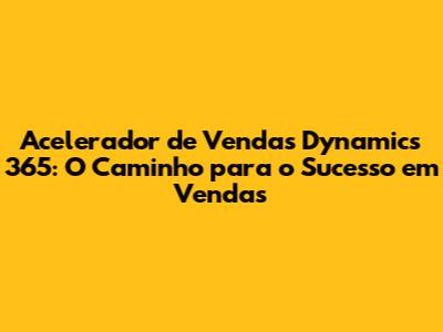 O Que é o Acelerador de Vendas Dynamics 365?