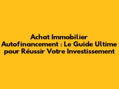 Hey les amis, si vous êtes ici, c'est que vous songez à vous lancer dans l'achat immobilier et que le terme "autofinancement" vous intrigue. Excellente initiative ! Dans ce guide complet, on va décortiquer ensemble tout ce qu'il faut savoir sur l'achat immobilier avec autofinancement. Préparez-vous à plonger dans le monde fascinant de l'investissement locatif et à découvrir comment rendre votre rêve accessible. On va explorer en détail les avantages, les inconvénients, les stratégies et les astuces pour vous assurer de faire les bons choix. Accrochez-vous, car on démarre fort !