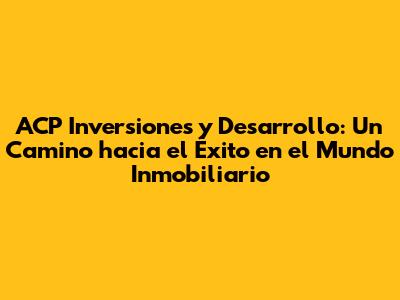 El Futuro de ACP Inversiones y el Desarrollo Inmobiliario