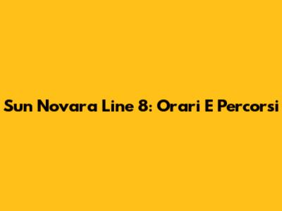 Sun Novara Line 8: Orari E Percorsi