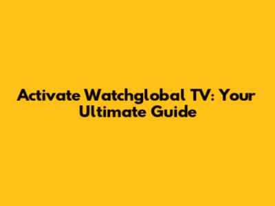 Step-by-Step Activation Guide: www watchglobal tv com activate