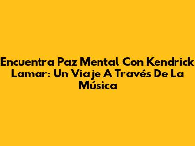 Encuentra Paz Mental Con Kendrick Lamar: Un Viaje A Través De La Música
