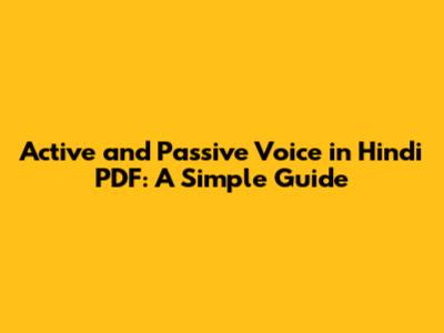 Active & Passive Voice In Hindi PDF: A Simple Guide