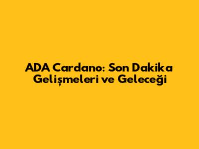 Son Dakika Gelişmeleri ve Haberler: ADA Cardano'da Neler Oluyor?