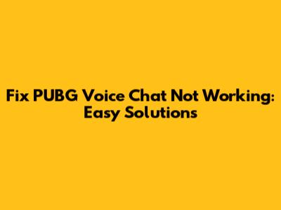 Fix PUBG Voice Chat Not Working: Easy Solutions